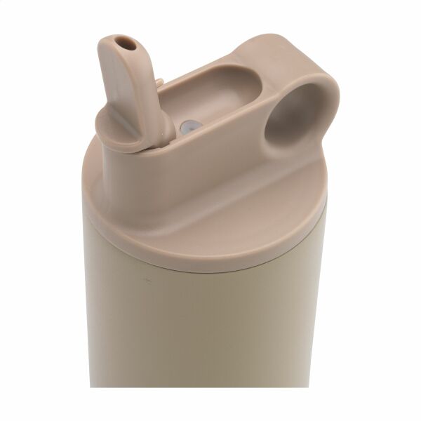 Dubbelwandige, lekvrije waterfles/thermosfles van gerecycled RVS. Afgewerkt met een mooie coating. De elegante fles is voorzien van een schroefdop in een matchende kleur, een inklapbaar mondstukje en afsluitbaar rietje. Dankzij de handige draagring neem je de fles gemakkelijk mee. Geschikt voor koude dranken en ideaal tijdens sportieve activiteiten. Niet vaatwasserbestendig. RCS-gecertificeerd. Totaal gerecycled materiaal: 83%. Inhoud 800 ml. RVS kan vele malen gerecycled worden terwijl de kwaliteit van het materiaal grotendeels behouden blijft. Door het gebruik van gerecycled RVS worden minder nieuwe grondstoffen gebruikt. Dit betekent minder energieverbruik en minder gebruik van water. Per stuk verpakt.