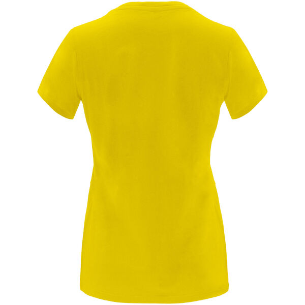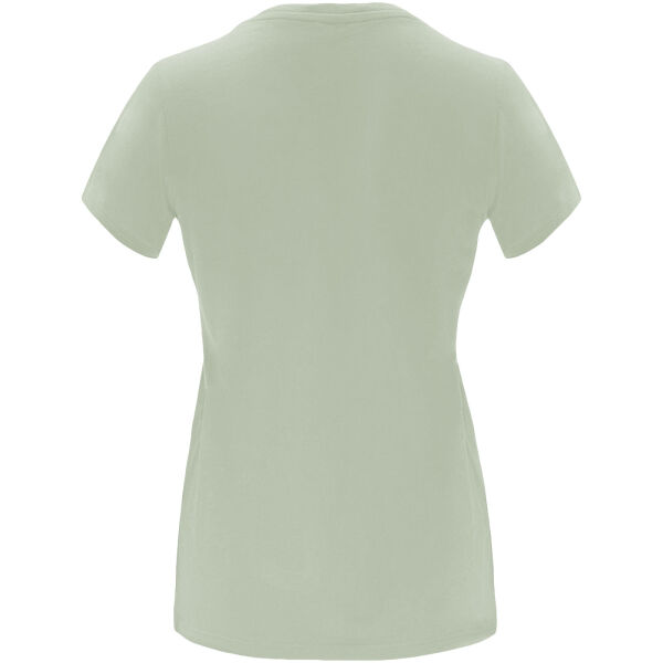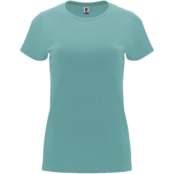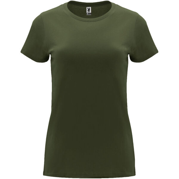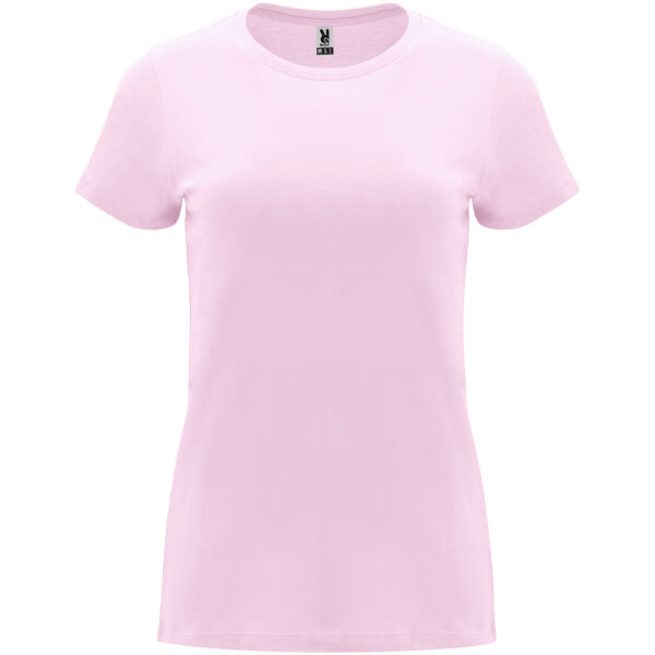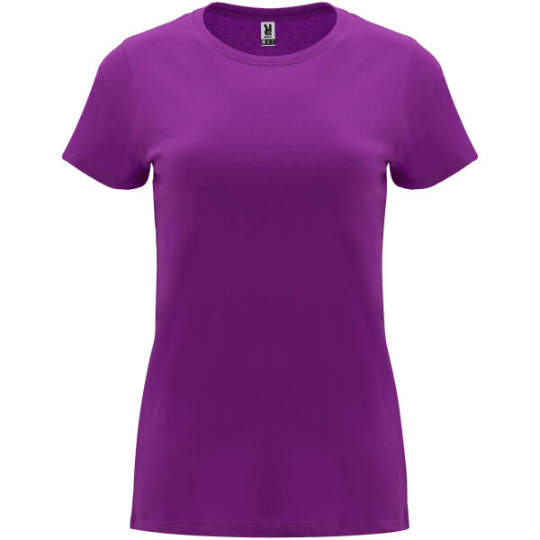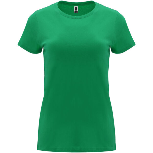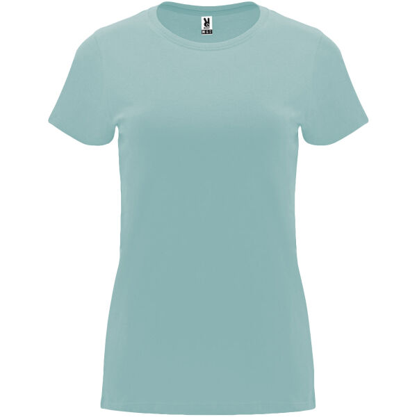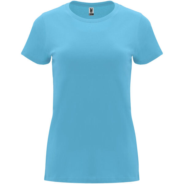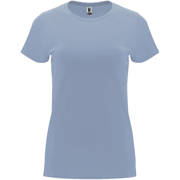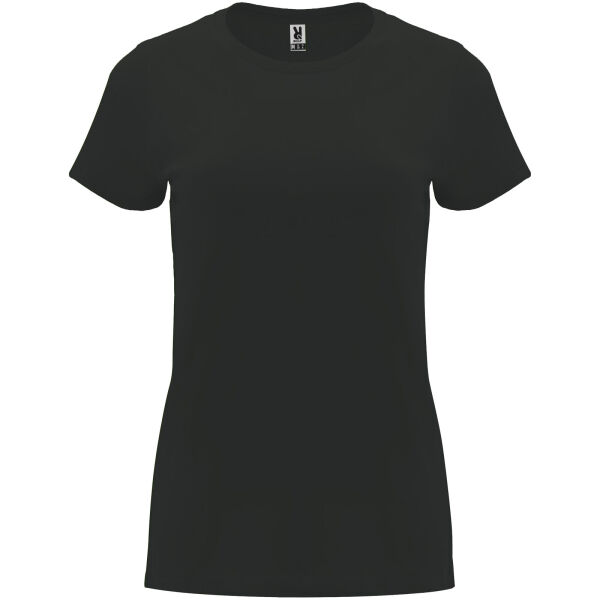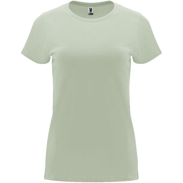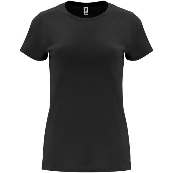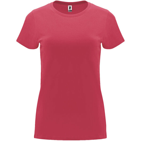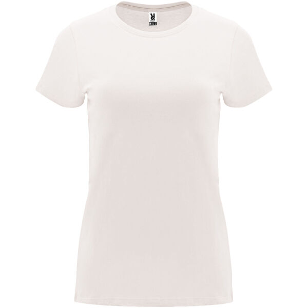 Getailleerd T-shirt met korte mouwen voor dames. 1x1 geribde ronde hals. Versterkte bedekte naden in de kraag. Verwijderbaar etiket.