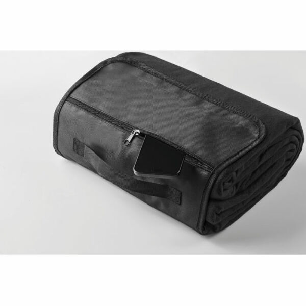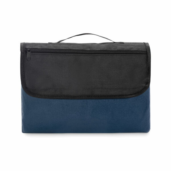 Opvouwbaar picknickkleed van RPET 150 g/m² (68% gerecycled polyester/32% polyester) polar fleece, met waterafstotende gecoate PEVA achterkant. Voorflap met ritsvak en handvat.