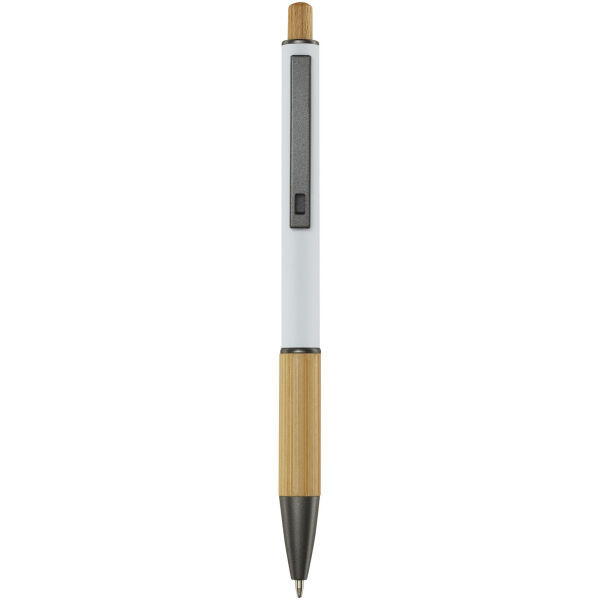 De Darius balpen is gemaakt van gerecycled aluminium, wat minder energie kost dan het produceren van aluminium uit grondstoffen. Het vermindert ook de hoeveelheid afval op stortplaatsen en draagt bij aan het behoud van natuurlijke hulpbronnen met als doel de uitstoot van broeikasgassen te beperken. De drukknop en de onderkant van de houder zijn gemaakt van bamboe. Inktkleur: zwart. Schrijflengte: 800 meter. Stiftmaat: 1,00 mm.
