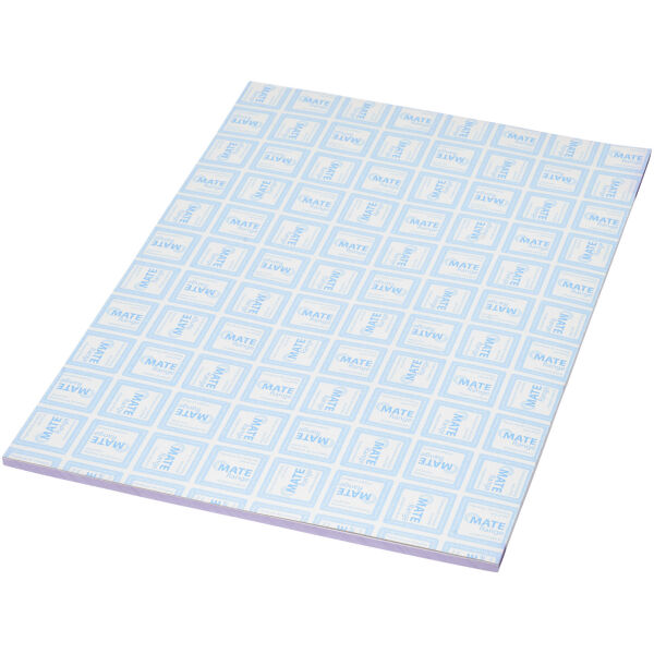 Wit A4 Desk-Mate® kladblok. Standaardmodel Inclusief 50 vel 80 g/m2 papier. Full colour print beschikbaar op elk vel. Beschikbaar in 3 formaten (25/50/100 vellen).