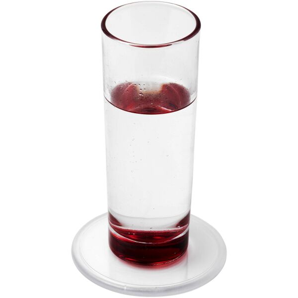 Tweedelige kunststof onderzetter met een bedrukt papieren inlay. Papieren inlay kan aan beide kanten worden bedrukt.