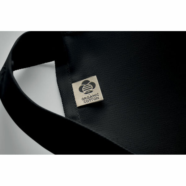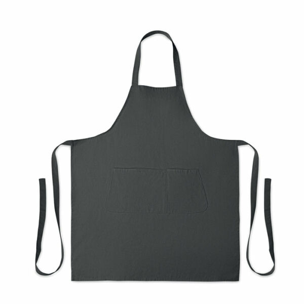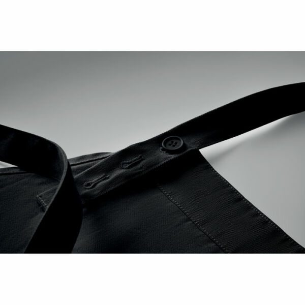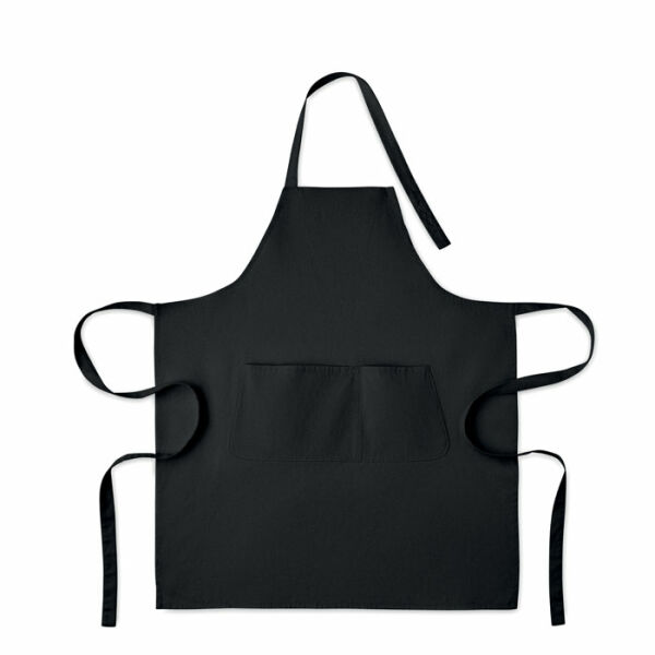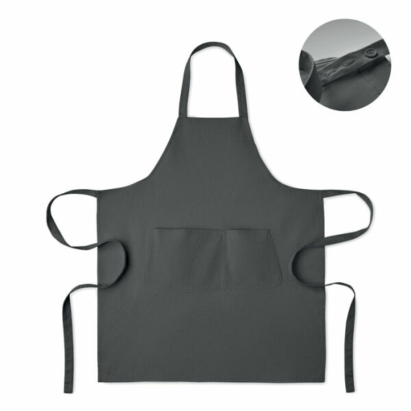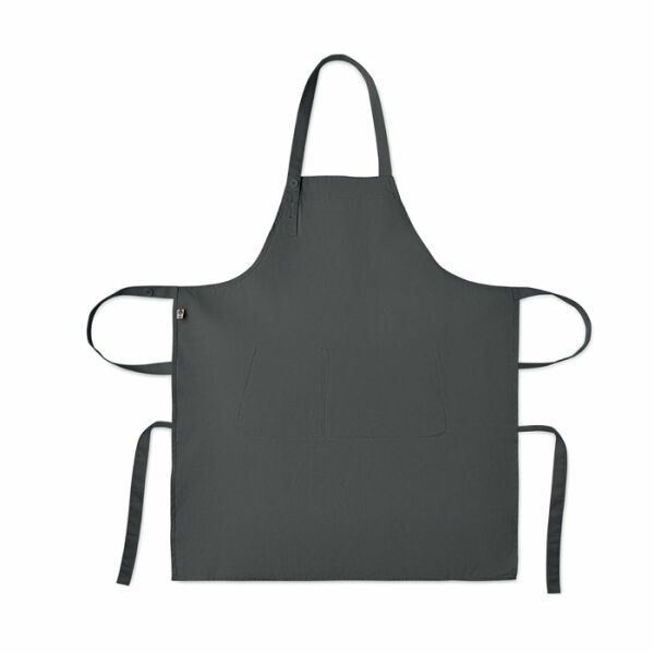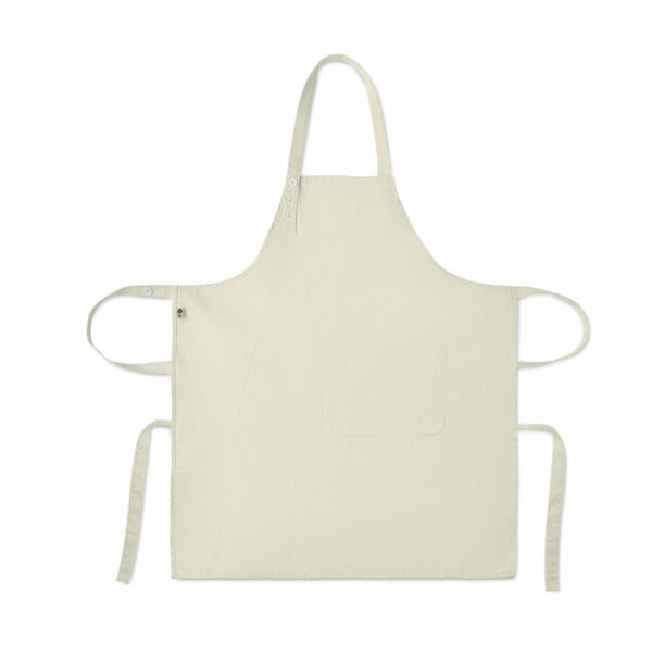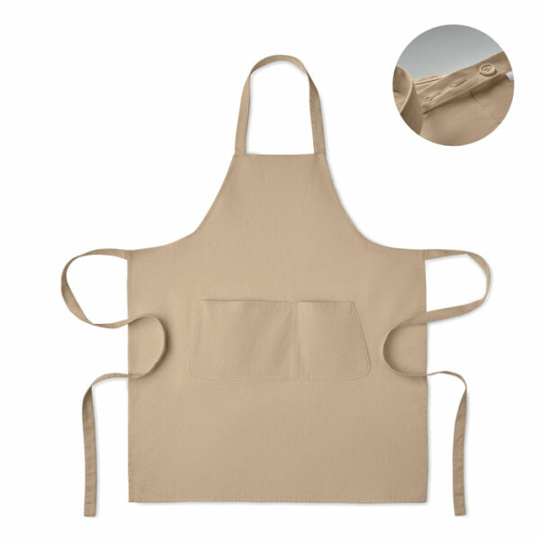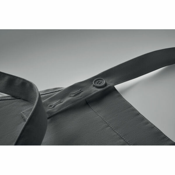 Verstelbaar schort met 1 groot voorzak met 2 vakken in 240g/m² biologisch katoen. Met verstelbare knoop op de nekband.
