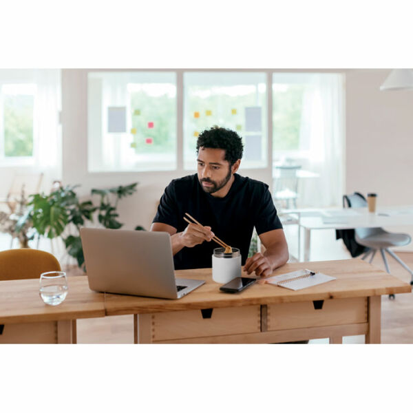 Dubbelwandige geïsoleerde lunch container van 90% gerecycled roestvrij staal en 10% roestvrij staal met PP deksel. Inhoud: 500ml.