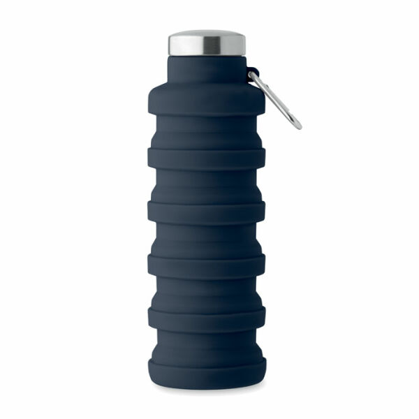 Inklapbare siliconen fles met roestvrijstalen dop en aluminium karabijnhaak. De karabijnhaak is niet geschikt voor klimmen (niet voor professioneel gebruik). Inhoud: 500ml.
