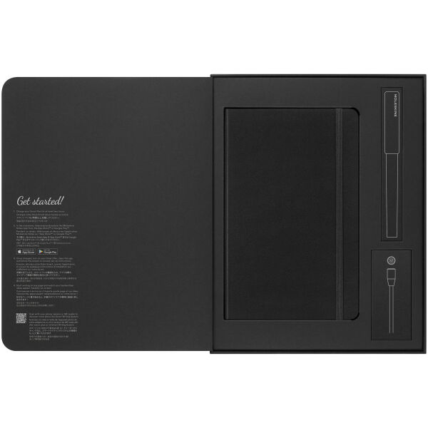 De Smart schrijfset bevat het bestseller klassieke Moleskine notitieboek (groot gelijnd), een Smart pen, een magnetische oplader en een navulling. Mol…